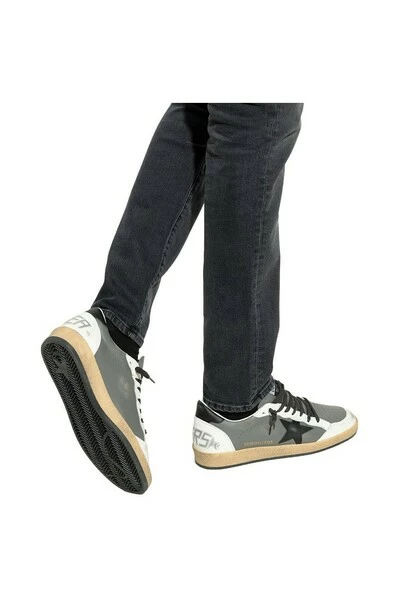 Wit met grijze ‘Ball Star’ sneakers van Golden Goose. Gemaakt van leer en voorzien van het kenmerkende stermotief, logopatroon en zwarte rubberen zool.