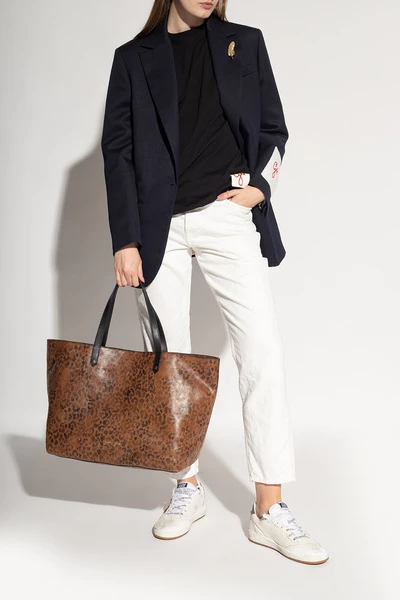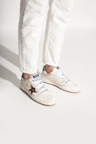 Witte Ball Star sneakers van Golden Goose. Dit model met veters, gemaakt van leer en stof, zit op een beige rubberen zool en heeft een vintage behandeling, een logo in reliëf en het kenmerkende stermotief van het merk in zwart en beige.