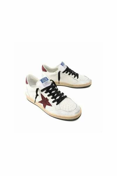 – Sublime Star Ball Sneakers in wit leer gebarsten Crème – Gekleurd leer, ster Glitter rode granaat – afgerond uiteinde met gebarsten lederen detail – Witstof Tab – Galuter Red Grenat amp; Wit lederen gebarsten Logoté – bijzonderheid van dit model: Snea Silver Inscription aan de linkerhiel amp; Kers aan de rechter hiel – zwarte kanten sluiting – lateraal logo reliëf GGDB/Ballstar Gold Color – Beige Outsole amp; Zwart – Binnenvoering in leer amp; Eponge – lederen binnenzool met 3 cm semi -gecompsiveerde hiel – gebruik alle -over gedragen – opgenomen stofzak – gemaakt in Italië Dit algemene schoenmodel, we raden u aan een maat onder uw gebruikelijke maat te nemen
