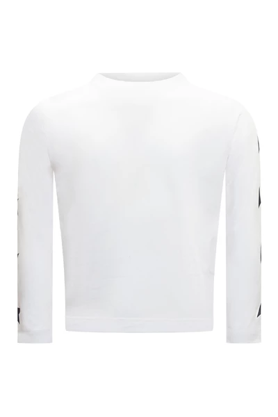 Lange mouwen T-shirt. Ribbed Crewneck. Afdrukken op de mouwen. Gedrukt logo op de achterkant van de nek.