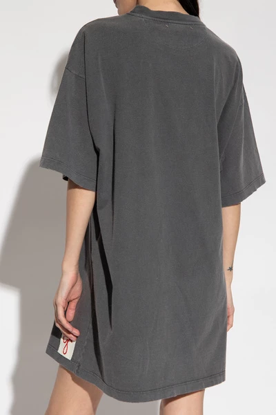 Donkergrijze t-shirtjurk met een vintage effect van Golden Goose. Gemaakt van katoen, dit ontwerp met korte mouwen beschikt over een logo -print, de kenmerkende patch van het merk met rood monogram borduurwerk, metalen ster -applicaties aan de achterkant en geribbelde bemanningslid.