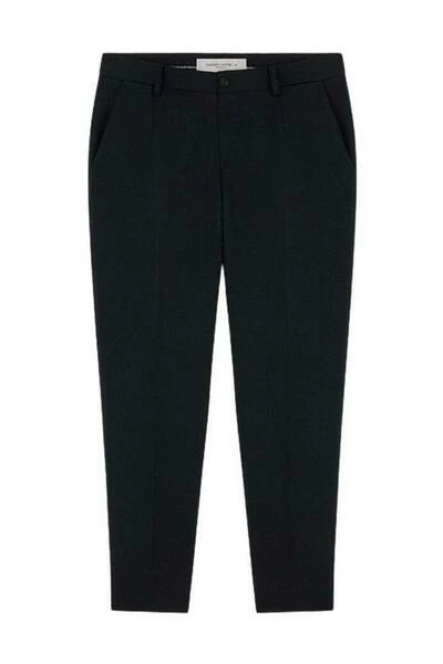 50486 donkerblauwe gouden milano -broek Compacte gabardine wol