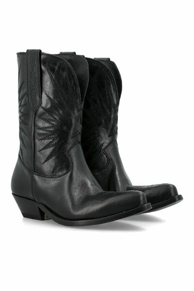 Zwarte ‘Wish Star Low’ enkellaarzen van Golden Goose. Gemaakt van leer, dit model bevindt zich op een zwarte lederen zool en heeft onderscheidende stikingsdetails.
