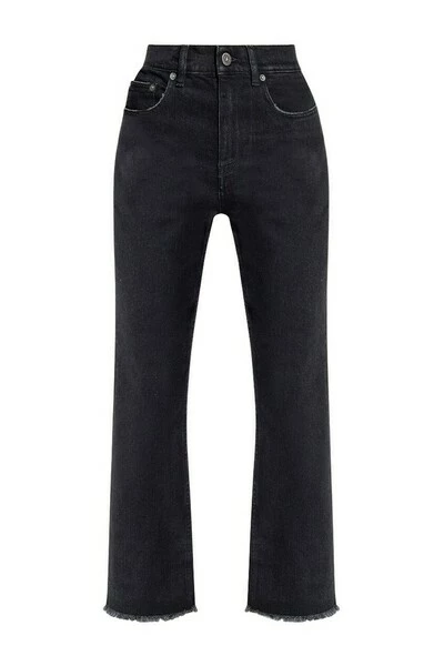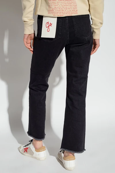 Zwarte verontruste jeans van Golden Goose. Dit met een rits en de knop bevestigd, heeft dit high-tailed paar applicaties en logo-patch aan de achterkant, drie voorzakken, twee achterzakken en brede, rechte benen.