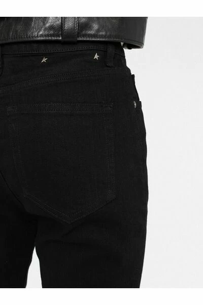 Golden Goose Jeans Black Star-STUD wijd uitlopende jeans van Golden Goose met zwart, stretch-cotton, sterstuddetails, wijd uitlopende ontwerp, riemlussen, klassieke vijf zakken en voorste knop en zip-bevestiging.Deze beschrijving is automatisch vertaald.