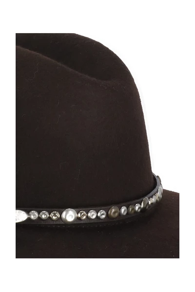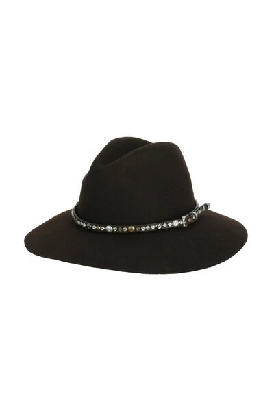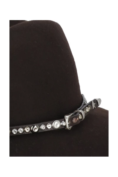 Golden Goose Hats – Brown Golden Goose Wool Fedora For Woman – Belt met studs – Contrasterende stoffen interieur