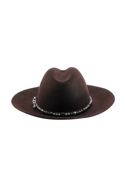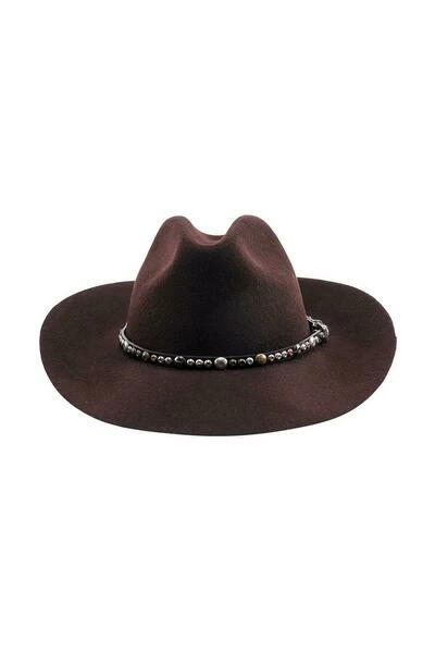 % Lederen band met gesp en studs, % intern borduurprofiel, % brede flap, % gemaakt in Italië, % wol/leer