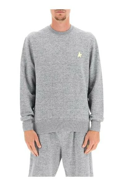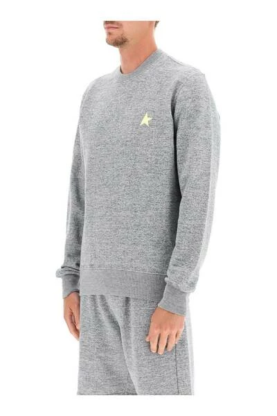 Crew-neck sweatshirt in Melange Cotton Stretch Jersey uit de Star Collection van Golden Goose, gedetailleerd met goud-gelamineerde ster-logo-print. Regelmatige fit, geribbelde randen, ongebuwer interieur. Het model is 185 cm lang en draagt een maat M.