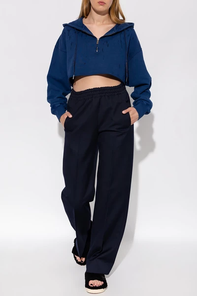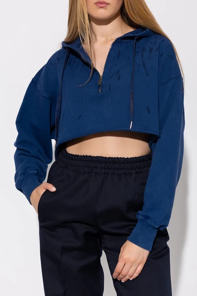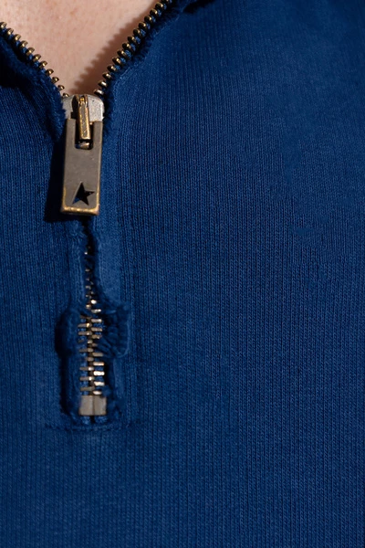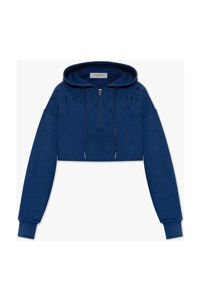 Marineblauw sweatshirt met een drawcord-verstelbare kap van Golden Goose. Deze stijl is gemaakt van katoentrui en heeft een verfspattende effect, een ritssluiting, lange mouwen met elastische manchetten en een ruw getrimde zoom.