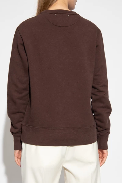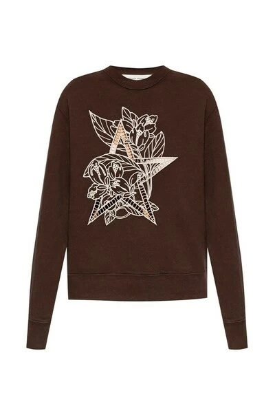 Brown Crewneck Sweatshirt van Golden Goose. Deze stijl is gemaakt van katoentrui en beschikt over een geborduurd patroon met crèmesuitsnijdingen en geribbelde versieringen op de kraag, onder zoom en manchetten.