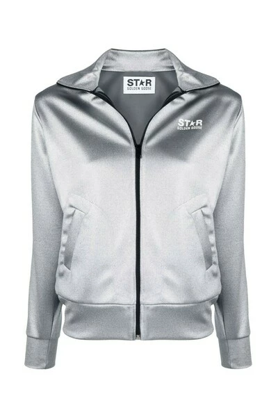 Zilverkleurige sweatshirt van Golden Goose. Dit kledingstuk is bevestigd met een rits en beschikt over een logo -print, twee slipzakken en geribbelde randen.