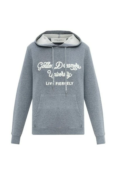 Grijze hoodie van Golden Goose. Gemaakt van katoen, dit kledingstuk heeft een kap, logo -patch, twee voorzakken en geribbelde randen.