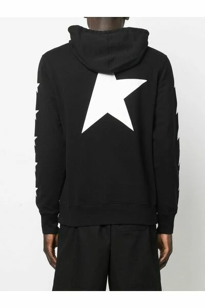 Katoen, sterrendruk, grafische afdruk aan de achterkant, trekkoord, lange mouwen, rechte zoom, gemaakt in Italië. Samenstelling Katoen 100%