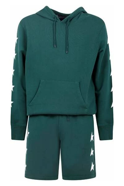 Witte sterafdrukken op de zijkanten van witte sterrenprint op de achterkant lange mouwen met koordstam kangoero-tas materiaal Zorgmateriaal: 100% katoengrootte & Pas regelmatig fit details kleur: groen | Groen gemaakt in: Italië Stijl nr.: GMP01224 P000871 35825