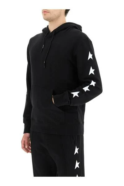 Golden Goose hoodie in lus-back katoenen trui, verrijkt door contrasterende sterrenprint op de mouwen en aan de achterkant. Drawstring kap, kangoeroe -zak en geribbelde randen. Normale pasvorm. Het model is 187 cm lang en draagt een maat L.
