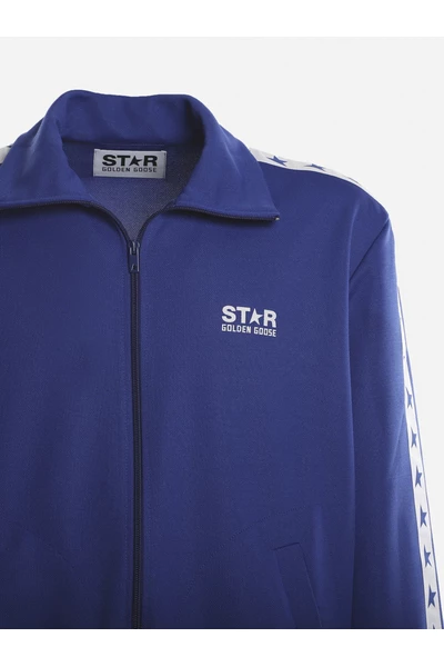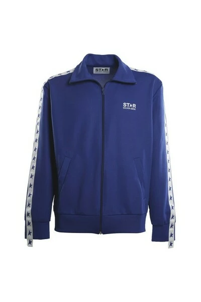 Golden Goose Sweaters -Front ZIP-sluiting-lange mouwen-klassieke kraag-contrasterende zij-logo-band – de grootte getoond op de foto is een M-m-moderne in Italië-kleur: blauw