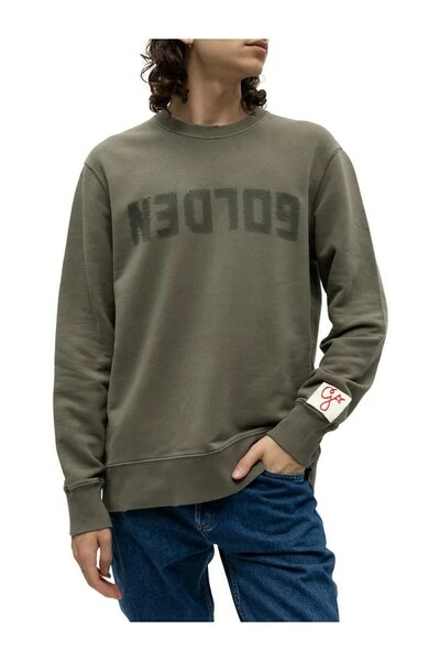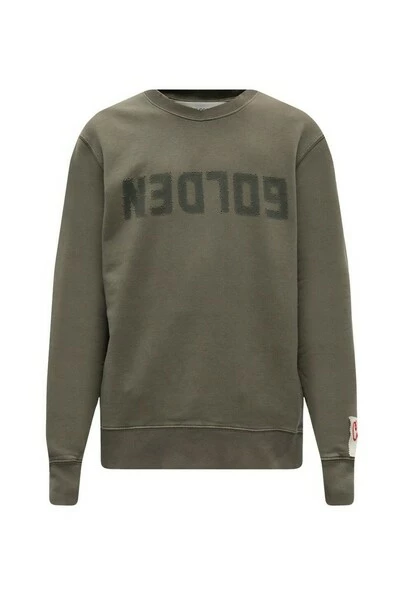 Greyish Green Crewneck Sweatshirt van Golden Goose. Deze stijl is gemaakt van katoentrui en beschikt over een logo -patroon en geribbelde versieringen op de kraag, onder zoom en manchetten.