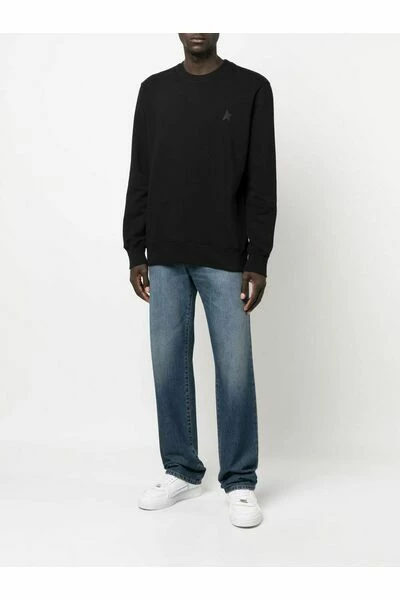 Golden Goose Sweaters Black logo-print katoenen sweatshirt van Golden Goose met zwart, katoenen, logo-print aan de borst, bemanningslid, lange mouwen, geribbelde afwerking en rechte zoom.Deze beschrijving is automatisch vertaald.