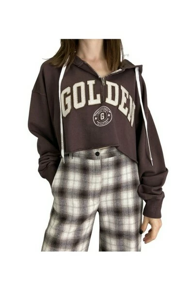 Jersey Golden Goose. Gewas sweatshirt kap met witte letters aan de voorkant. Het model meet 164 cm weegt 49 kg en draagt maat M.