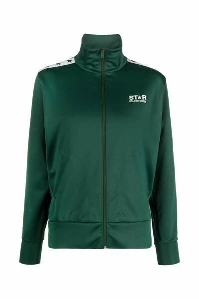 Golden Goose Sweaters Green Green Sweatshirt van Golden Goose met Star Print, Signature One Star -logo, logo -print aan de voorkant, hoge nek, aan de voorste ritssluiting, twee diagonale zakken aan de zijkanten en rechte zoom. Grootte Standaard designer -ID: GWP00875 P000520 35825