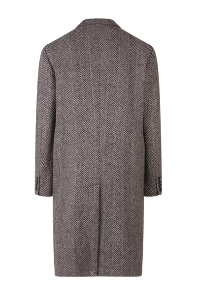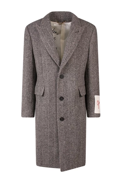 Enkele borsten met knoppen sluiting, piekrapel, maxi-tag met logo-borduurwerk, gemaakt in Italië, 100% maagdelijke wol
