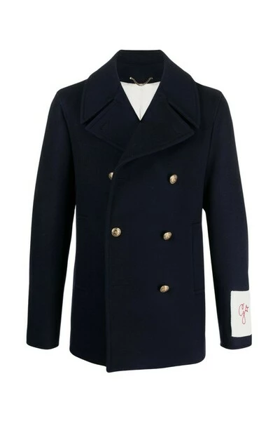 Virgin Wool Blend, Logo Patch bij de mouw, Star Patch Detail, Gold-Tone Logo Plaque, in reliëf Gold-Tone-knoppen, ingekeepte revers, lange mouwen, met dubbele borte knoopbevestiging, voorste laszak, gemaakt in Italië. Samenstelling: Buiten: Virgin Wol 72%, polyamide 28%Voering: polyester 65%, viscose 64%, Cupro 36%, katoen 35%