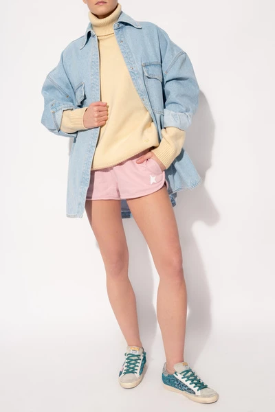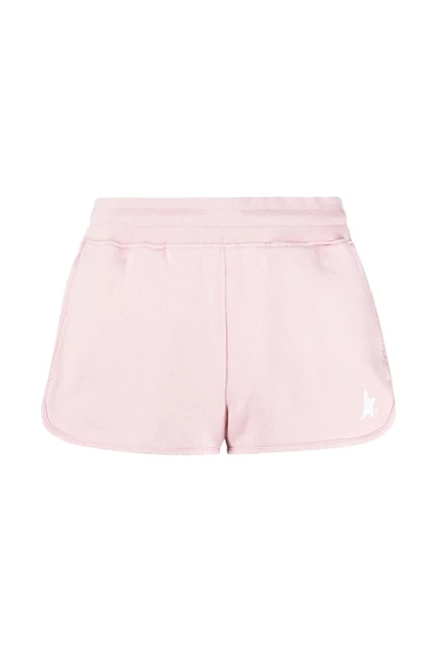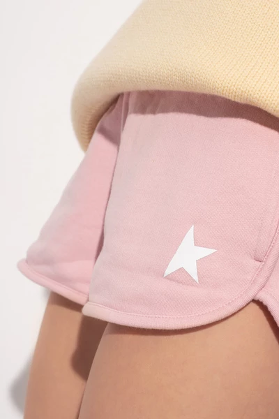 Roze shorts van Golden Goose. Gemaakt van katoen en versierd met een witte grafische print met het logo van het merk, heeft dit paar een elastische tailleband met een trekkoord -bevestiging en twee slipzakken.