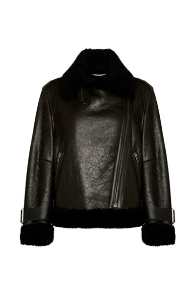 Golden Goose Jacket Model Aviator Coffee, Leather, Shearling Voering, kraag met omkeer, voorste gecentraliseerde sluiting met zip en lange mouwen. Oorsprong: Italië Externe compositie: leer 100% wasinstructies wassen in een gespecialiseerd centrum -ID -merk: GWP01194P00084855505