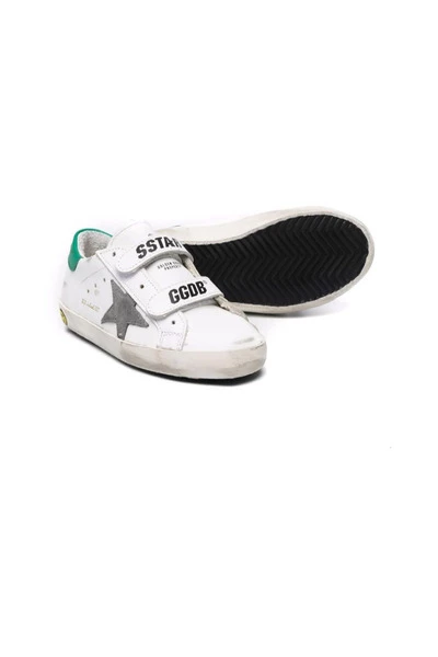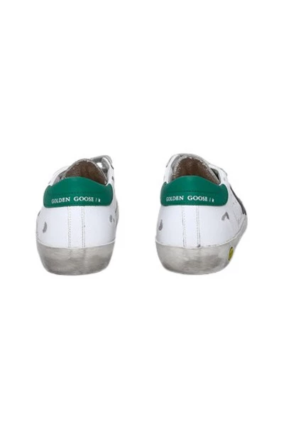 White Golden Goose sneakers met een groen paneel op de hielkap. Gemaakt van leer. Rubberen zool. Verouderd effect. Opvallende ster patch aan de zijkanten. Afmetingen: Zool Hoogte: 2-2,5 cm Materiaal: Buitenkant: Leer 100% Voering: Leer 100% Zool: Rubber 100% Product Style ID: GYF00111KF002822 Deze beschrijving is automatisch vertaald.
