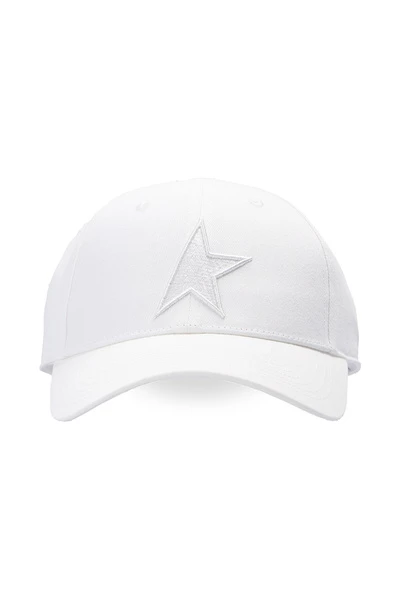 Witte honkbalpet van Golden Goose. Gemaakt van katoen, dit paar heeft een logo -patch en verstelbare riem aan de achterkant.