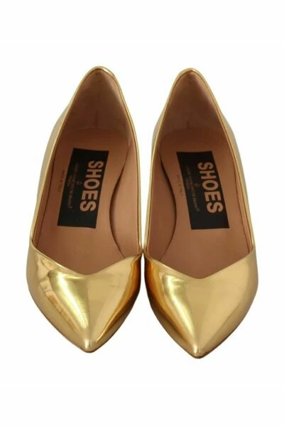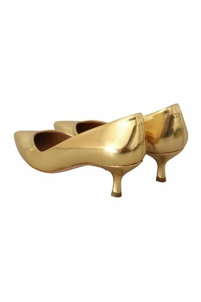 Golden Goose Deluxe merk prachtig gloednieuw met tags, 100% authentiek Golden Goose Deluxe merk goud gelamineerd lederen middenhielpompen. Model: hakken Pumps Kleur: Goud Materiaal: Lederen Sole: Leather Logo Details