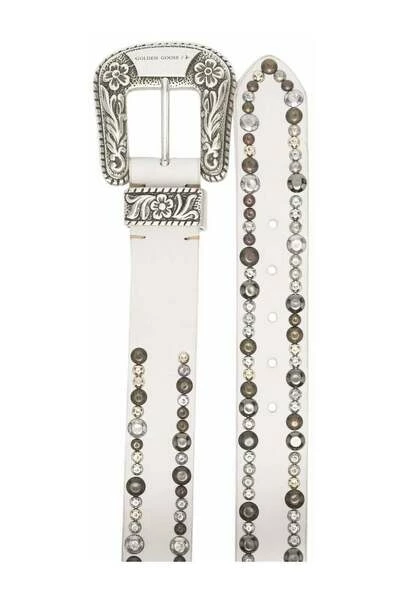 Leer, gegraveerd logo, bloemendetail, zilverkleurige studies verfraaiing, zilvertoongesplitsing, verstelbare pasvorm, compositie leer 100%. Breedte 4 cmDeze beschrijving is automatisch vertaald.
