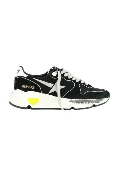 Zwarte Running Sole sneakers van leer en lycra met zilveren ster aan de zijkant. Ze hebben een vetersluiting, een GGDB-logo op de hiel, een goudkleurig GGDB/RSOLE-zijlogo en een stevige rubberen zool met handgeschilderde details. Materiaal: Bovenwerk: 45% rundleer, 27% katoen, 17% polyester, 9% nylon, 2% elastaan Voering: 57% katoen, 39% rundleer, 3% nylon, 1% polyurethaan Zool: 100% rubber Productstijl-ID : GMF00126.F000326.90178 Deze beschrijving is automatisch vertaald.