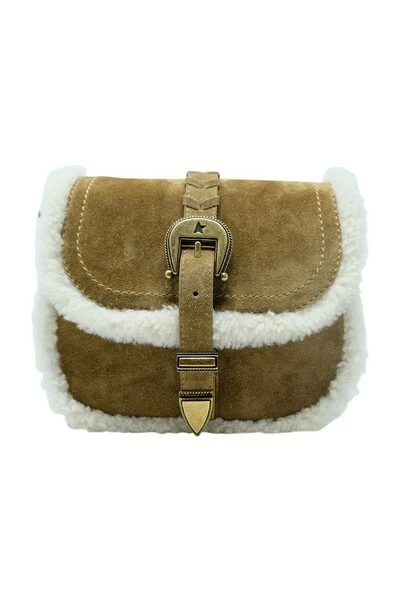 Golden Goose GWA00136.A000435.55138 Natuurlijke Suede Small Rodeo Bag, Style Name Rodeo Bag Small, Color Natural, Afmetingen 19x20x8 cm, Seizoen over