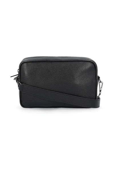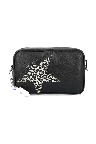 Zwart, kalfsvlees leer, kenmerkende sterrenpleister, logo -patch aan de voorkant, ritssluiting bovenop, enkele schouderhelling, hoofdcompartiment. Productie: Italië