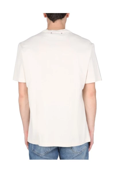 – RONDE HALS- CONTRAST PRINT OP VOORKANT- NORMALE PASVORM- GEMAAKT IN ITALIË- MODEL IS 185 CM LANG EN DRAAGT MAAT L