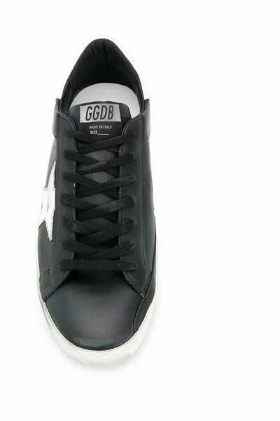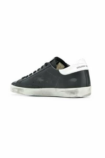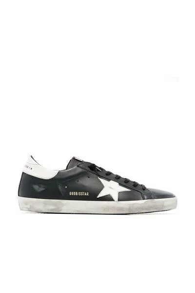 GOLD GOOSE Sneakers Zwarte Super-Star sneakers met distressed-effect van Golden Goose met ronde neus, vetersluiting aan de voorkant, logopatch op de tong, gemerkte binnenzool, kenmerkende ster op de zijkanten, contrasterende gemerkte hielcontour, distressed afwerking en platte rubberen zool.