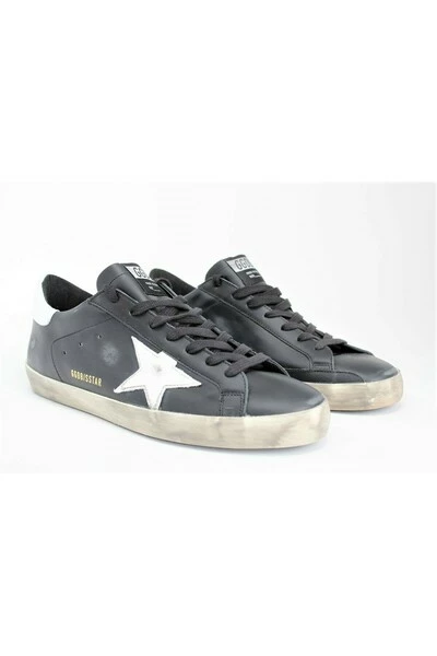 Golden Goose Sneakers Black/ White Sneaker Golden Goose An Tijdloos pictogram, maar in continue evolutie, klassieke modellen die constant opnieuw worden geïnterpreteerd, altijd in een ander licht. Superstermodel gemaakt van zwart leer, het wordt gekenmerkt door de ster en het witte leer lang in contrast. – 100% lederen bovenste – witte lederen ster – witte lederen hak – tonende snaren – vintage behandeling – rubberen zool – col. zwart/wit – gemaakt in Italië