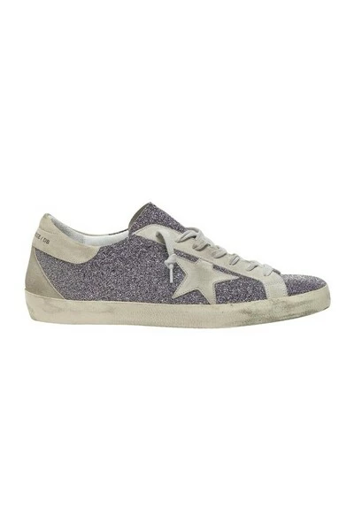 Ardeense pailletten met patch in roze en empiècements in chèvre blanc cassé Golden Goose Deluxe Brand met patch in roze van het merk aan de zijkant en details van pailletten en belijning aan de voorkant.