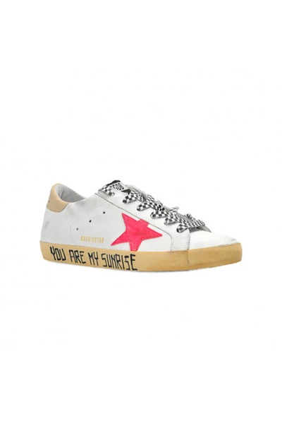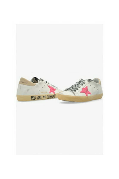 Dit paar sneakers van Golden Goose is ontworpen in wit leer wit met de roze ster. De zorg voor details maakt elk model uniek.
