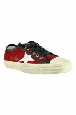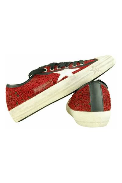Golden Goose Women S sneakers in kalfsleer bedekt met rode sponsachtige stof, zwarte lederen hielrecht, wit lederen ster -logo, 100% leer, rubberen zool. Gemaakt in Italië