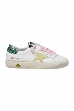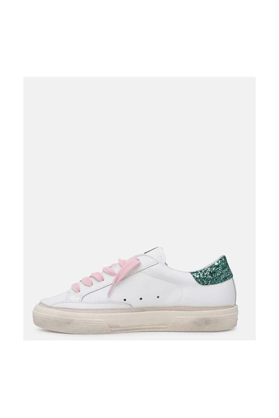Golden Goose Kids Sneakers White Green Glitter Heel Tab Suede Star Rubber Sole 100% Leer gemaakt in Italië