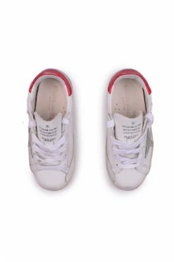 Golden Goose platte schoenen wit vooraan veter contrasterende zwarte gouden gans letters met smiley aan de onderkant ijsgrijs ster rood gelamineerd lederen rug patch compositie: 96% runderleer; 4% schapenleerDeze beschrijving is automatisch vertaald.
