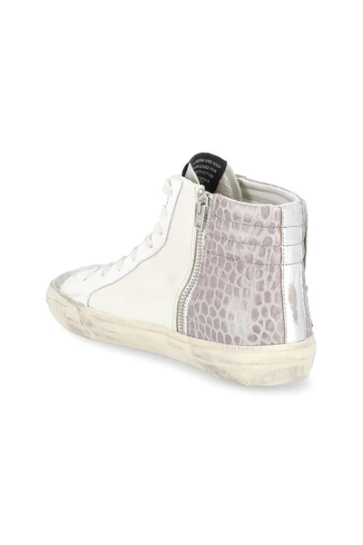 Golden Goose Sneakers – White Golden Goose Leather Sneakers For Woman – Suede Leather Round Toe – Leters Bevestiging – Zijkant Contrasterende kleur GGDB -Slide Logo – Side Rhinestones Star – Contrasterende kleur Croco Print Leather Details – Gamineerd lederen bovenste hak – Zijkantjes Zip bevestiging – Rubberen Sole – Gebruikt effectDeze beschrijving is automatisch vertaald.