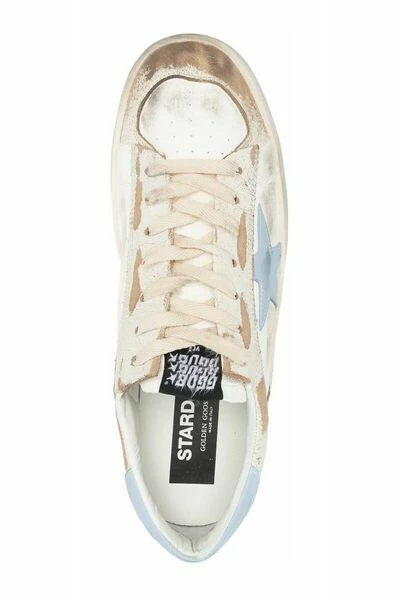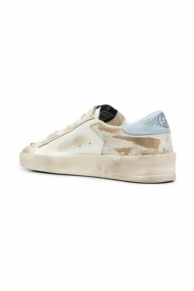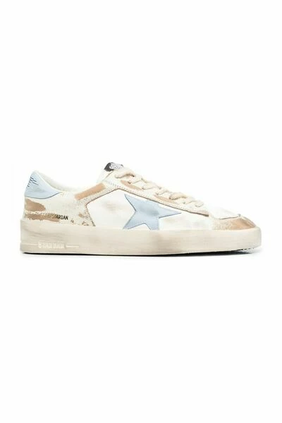 Golden Goose Sneakers Deluxe Brand Star Patch Sneakers van Golden Goose met wit/multicolour, kalf leer, noodlottig effect, kenmerkende sterrenpleister aan de zijkanten, contrasterende merkaanrecht, veterbevestiging vooraan, ronde teen en platte rubberen zool.
