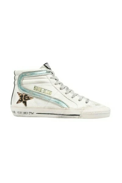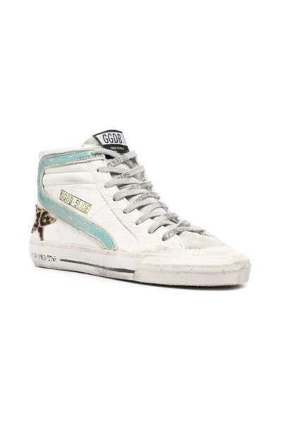 Beschrijving: Suede tip met wit rubberprofiel, zijkant en gouden ganslogods. Beschikt over stervertoepassing in dierenpaard en metaalleren inzetstuk. Logo op de voorste tong. Rubberen zool. 100% leer. ID: GWF00211F00323081784