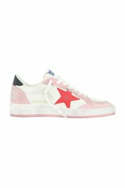 Stertrainers in wit en roze leer met suède details en een vintage effect. Ze zijn voorzien van een vetersluiting, rode ster details aan de zijkant, een zwarte leren hak, een geperforeerde teen en een rubberen zool.