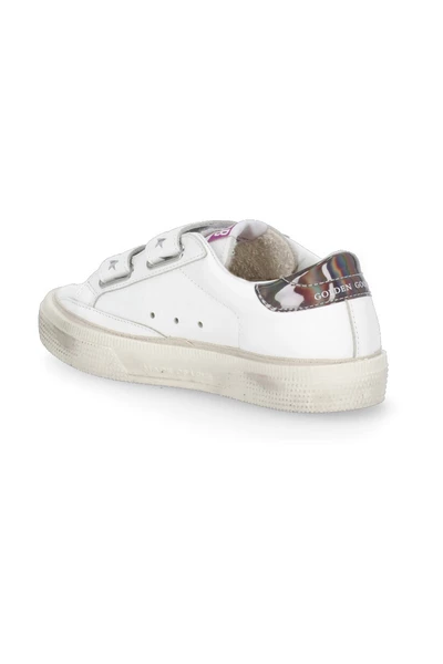 Golden Goose Sneakers- White Golden Goose Smooth Leather Girl S Sneakers- Velcro-riemen Bevestiging- Zilver Glitterde zijde iconische stervertjes lipje op tongspiegelhiel met logo-rubberen zool