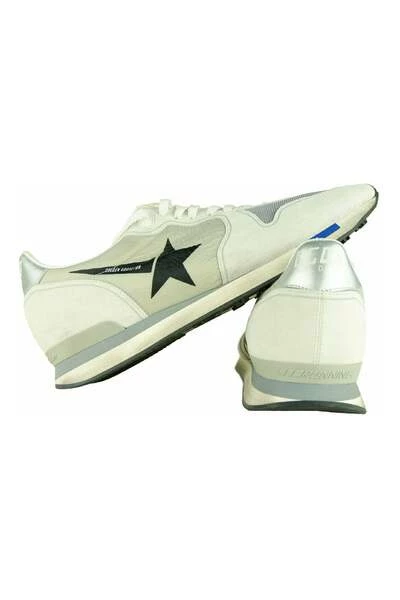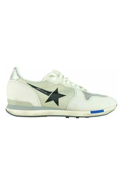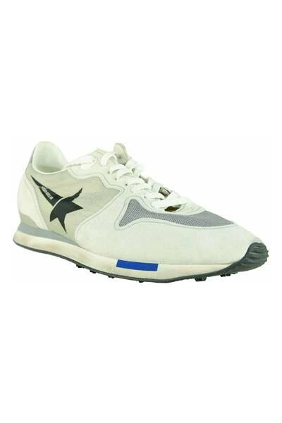 Gouden ganzen sneakers in suède kalfsleer, met onderdelen bedekt met synthetische stof, bedrukt sterlogo, hielrecht in zilverleer, 100% leer, rubberen zool. Gemaakt in Italië