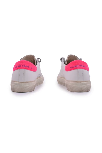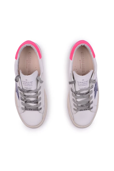 Golden Goose platte schoenen witte voorkant veter ronde tip veters met logo krabbeltjes printster afgedruktDeze beschrijving is automatisch vertaald.
